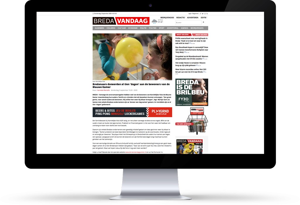 Nu de wereld langzaam weer opengaat, blijft contact voor deze bewoners niet vanzelfsprekend. Veel ouders wonen ver weg, moeten uren reizen en kunnen daardoor niet zomaar langskomen. Om gezinshereniging toch mogelijk te maken, ontwikkelde NO TOMATO samen met Koninklijke Visio een campagne waarin het Bredase bedrijfsleven werd uitgenodigd om te helpen.