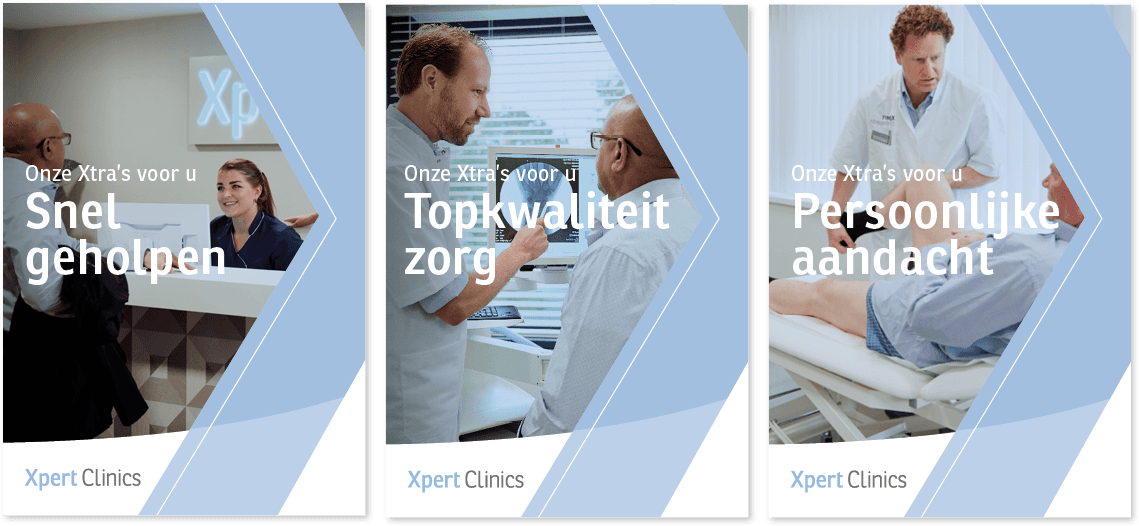 Op basis van de nieuwe positionering pakten we de volledige merkidentiteit van Xpert Clinics aan. Van logo en tone-of-voice tot beeldtaal en campagneconcept alles kreeg de kenmerkende ‘X-factor’ die het merk onderscheidt. De merkcampagne laat zien waar Xpert Clinics voor staat: specialistische zorg, persoonlijke aandacht en snelheid, met de belofte #xtravooru. Een herkenbare campagne die vertrouwen uitstraalt, zowel online als offline.